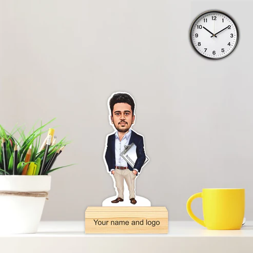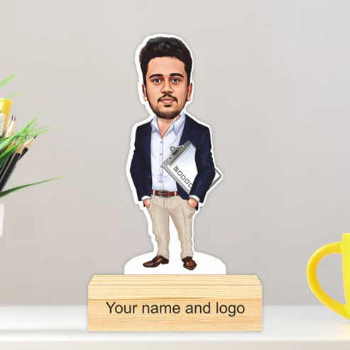Personalized Caricature with Wooden Stand – Cari009